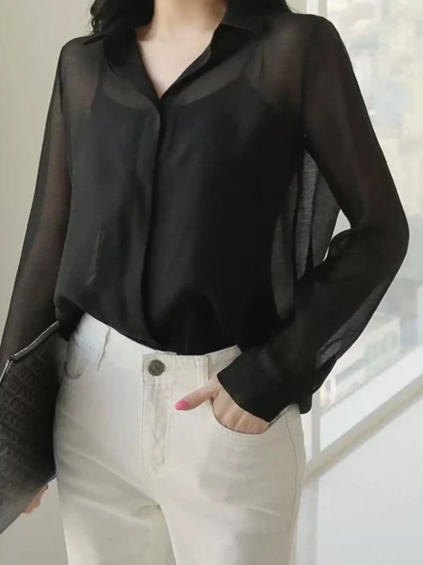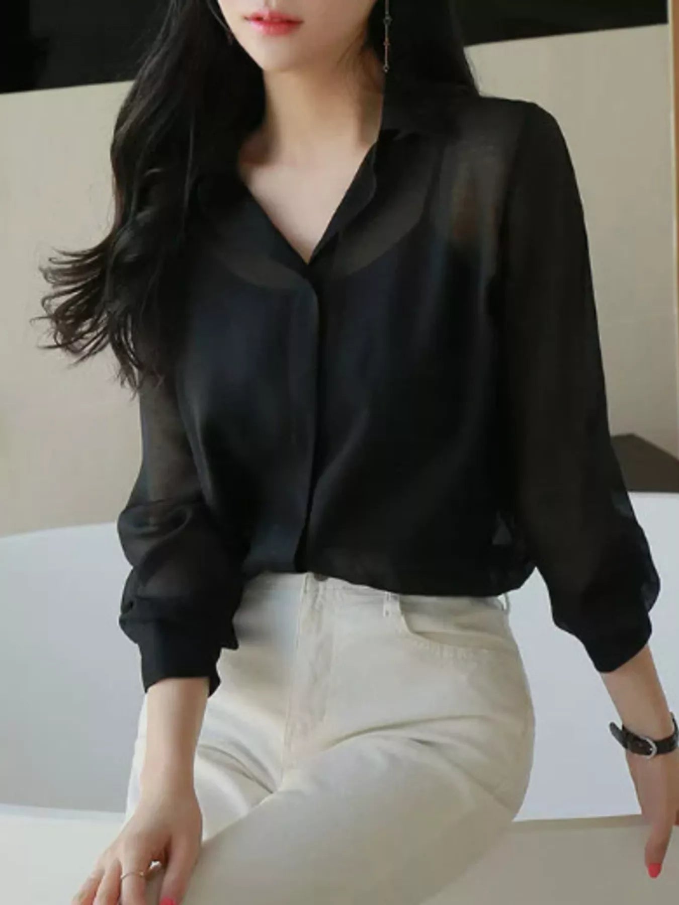 Elegant Sheer Long Sleeve Shirt
