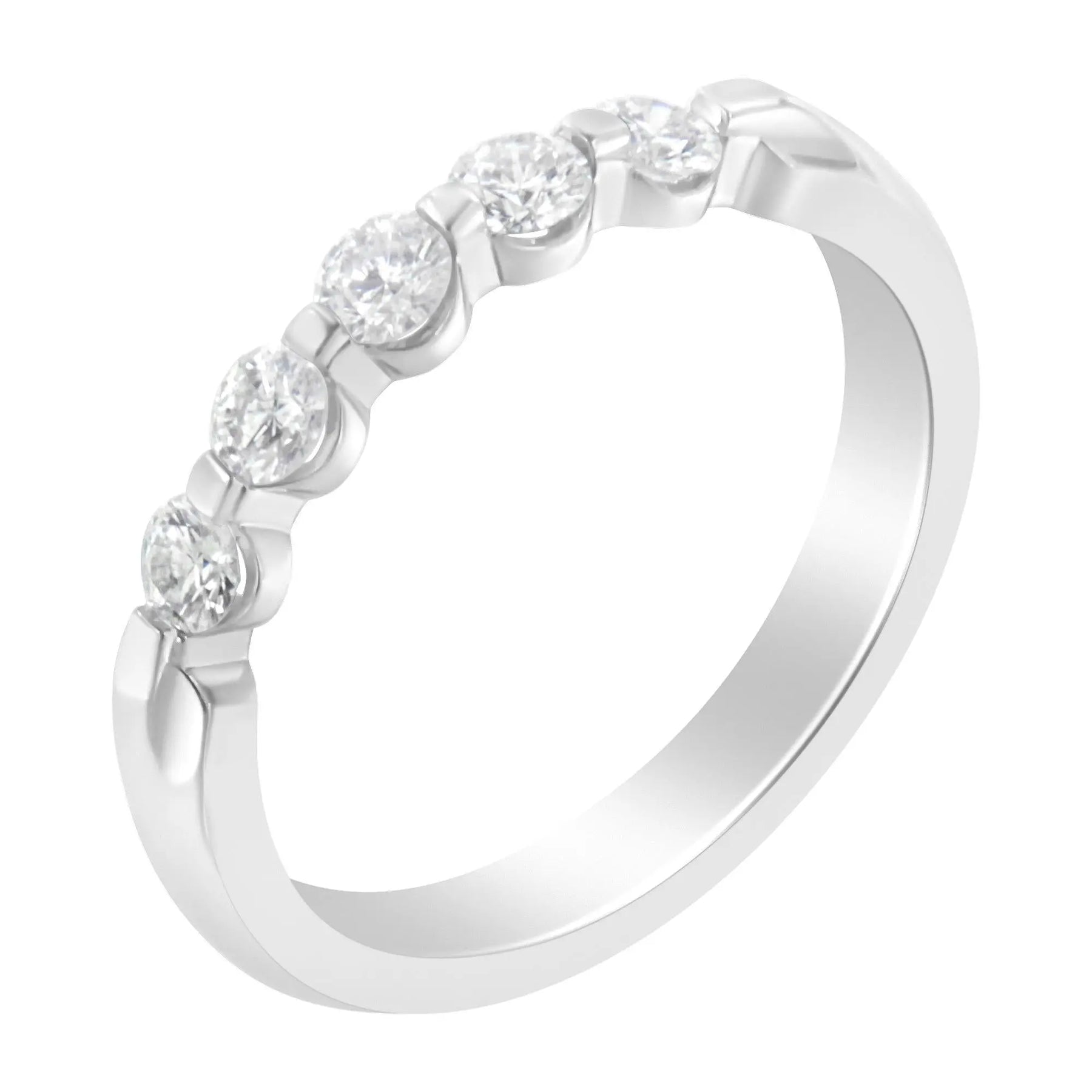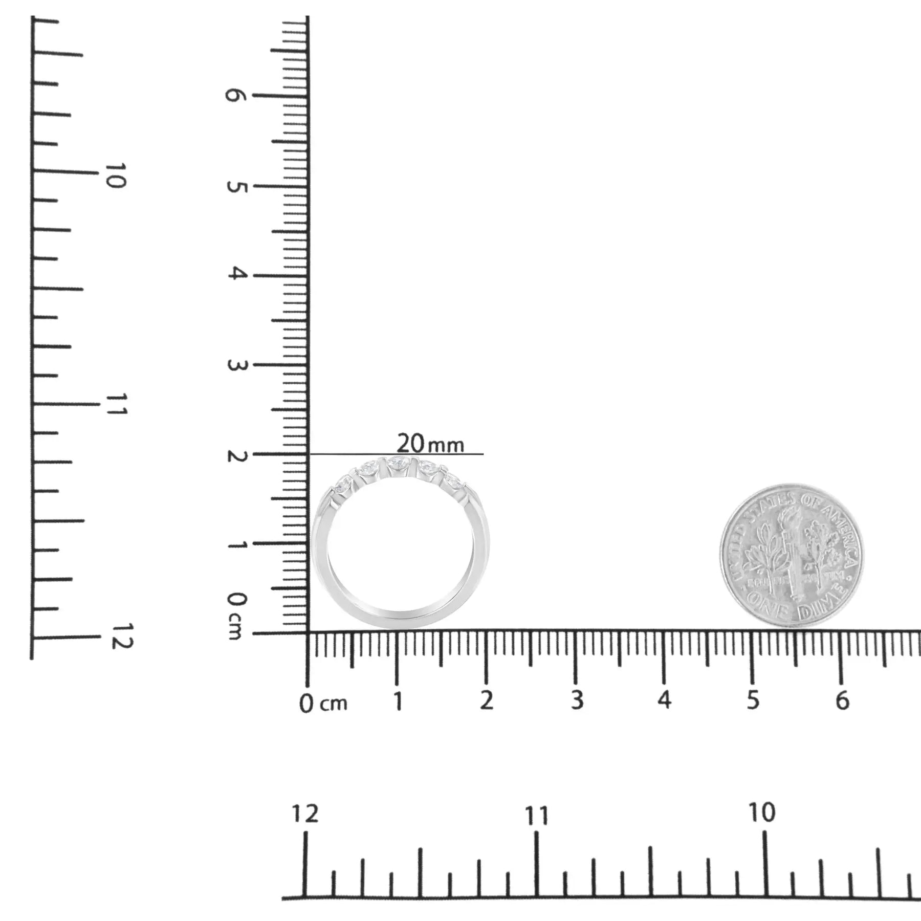 Make a bold and beguiling style statement with this phenomenal diamond ring. Fashioned in cool 10kt white gold, this stunning fashion ring is lined with the beautiful ribbon of round cut diamonds. Framed in the channel setting, the polished shine of these highlighting diamonds gives this ring a spellbinding look.