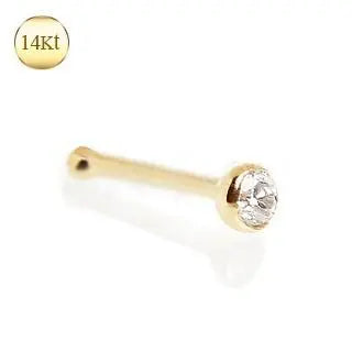 14Kt. Gold Stud Nose Ring with Press Fit CZ