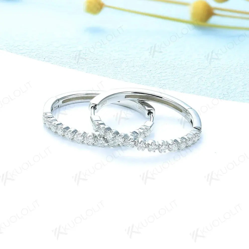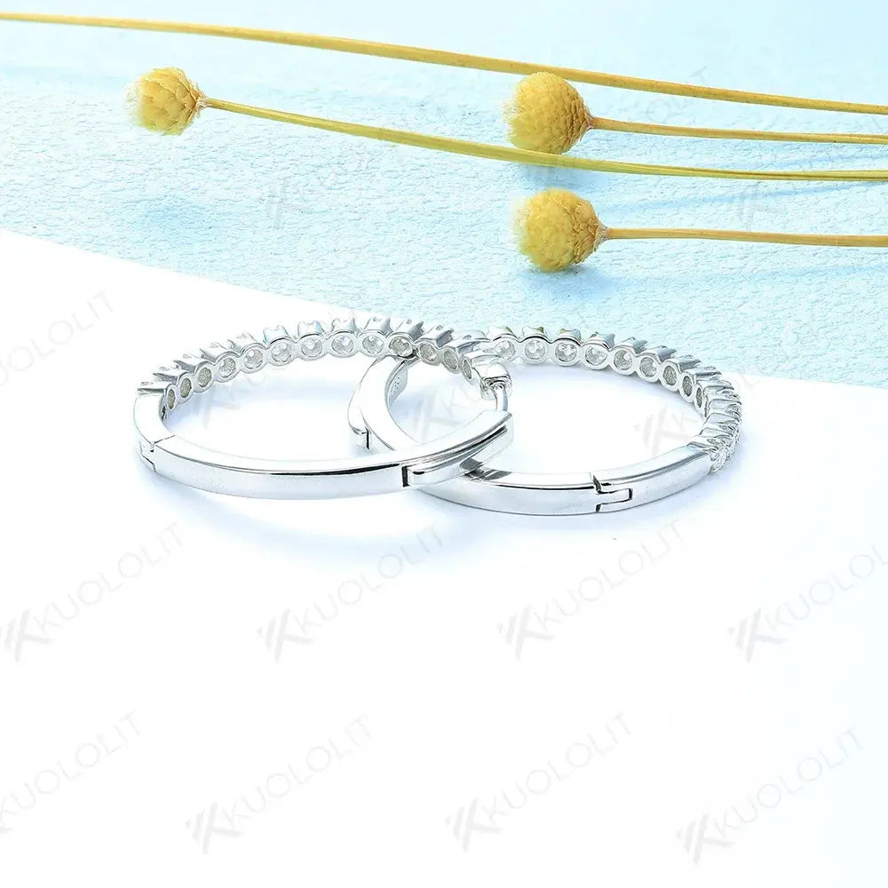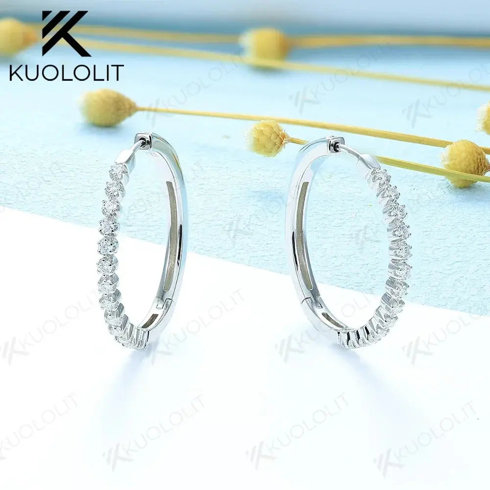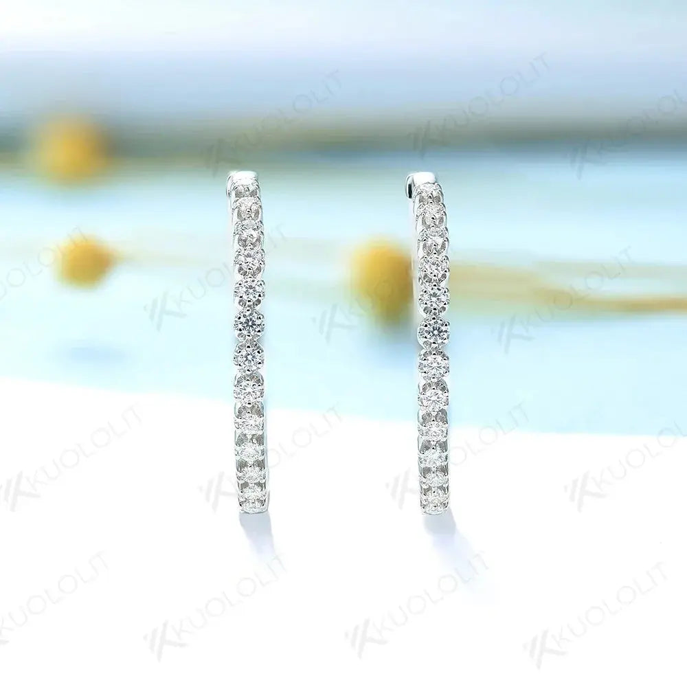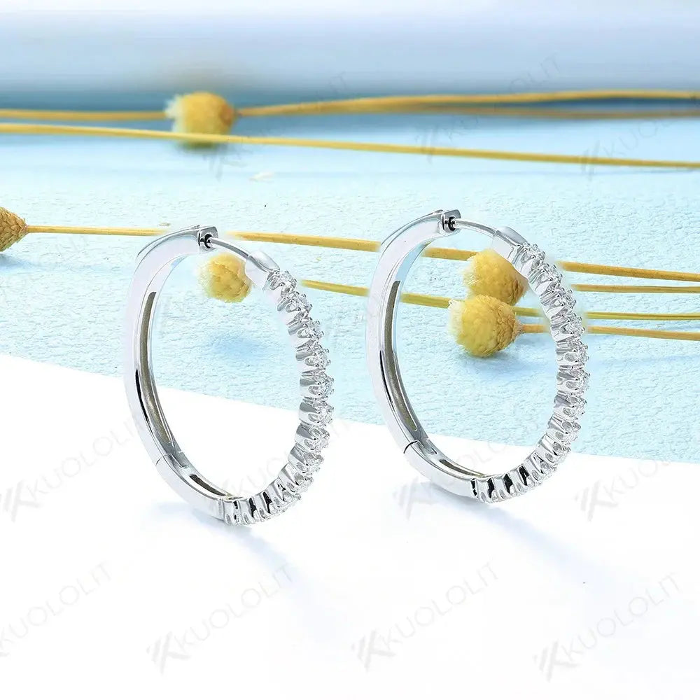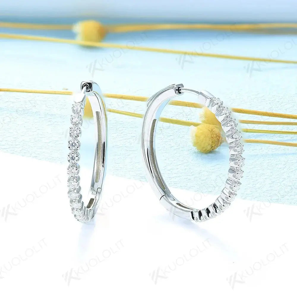 585 14K 10K White Gold Hoop Bubble Earrings Moissanite