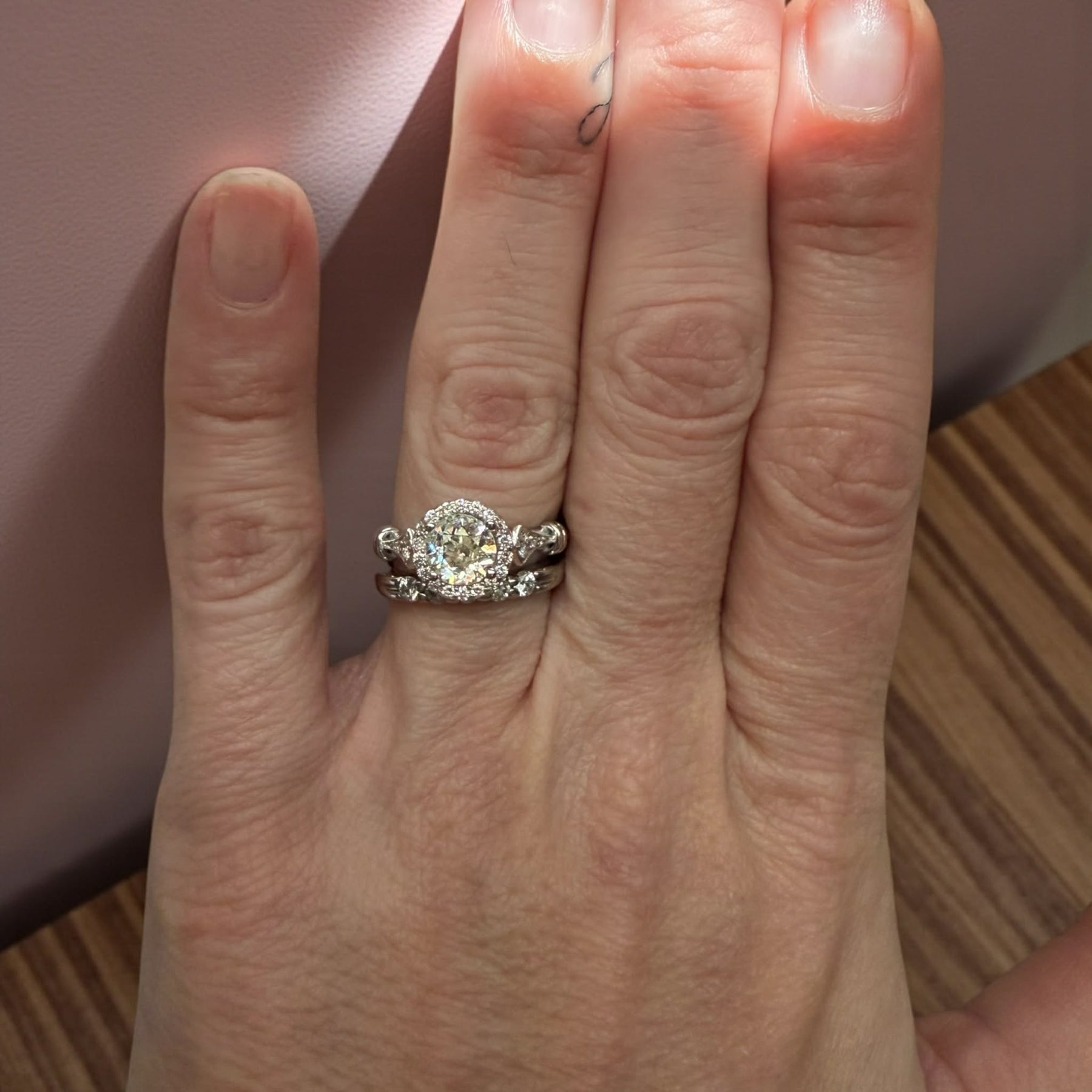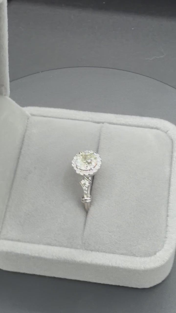 This exquisite vintage beauty catches light like no other. Truly a gorgeous piece of jewelry. Size 5 can safely be sized up 2 or down 2 sizes per jeweler. This listing is for the engagement ring only- band is available separately.