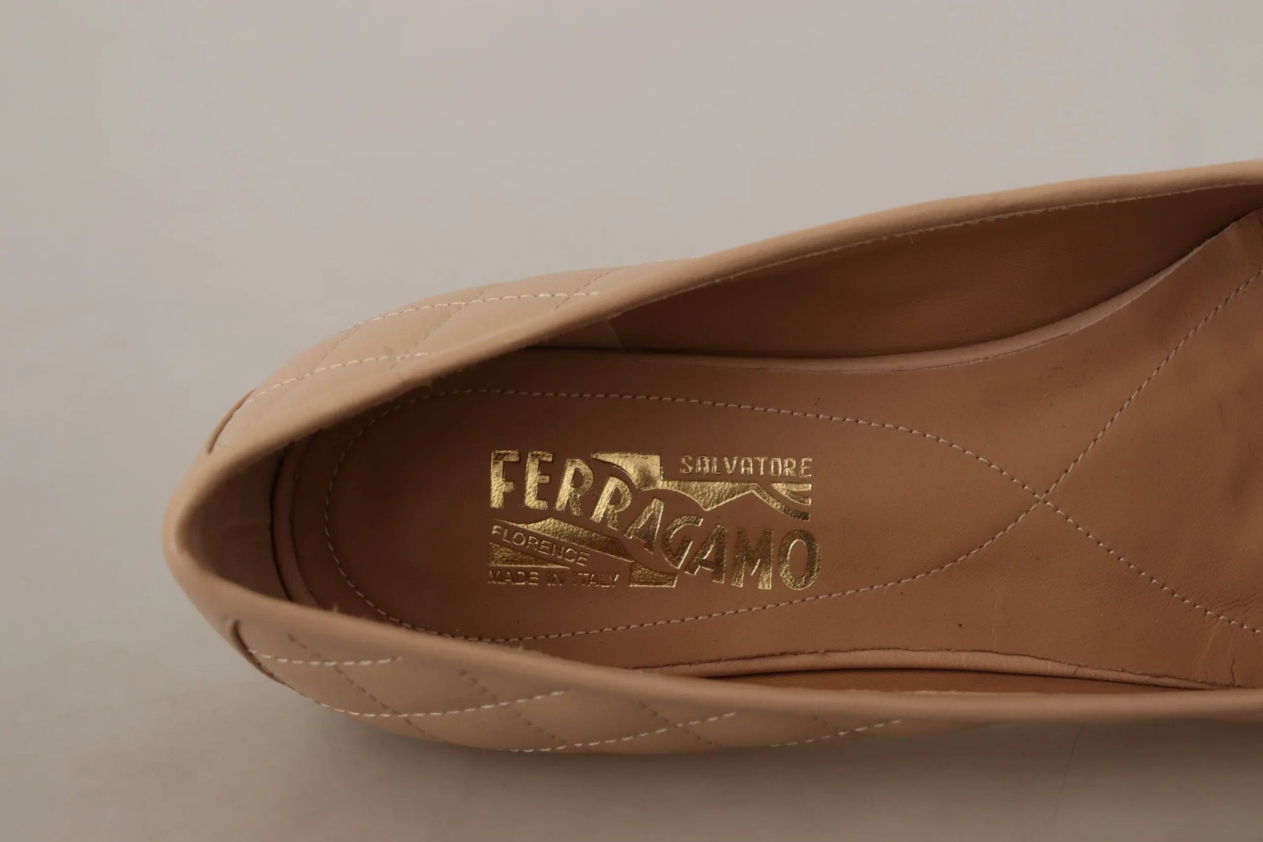 Beige and Black Nappa Leather Ballet Flat Shoes Salvatore Ferragamo