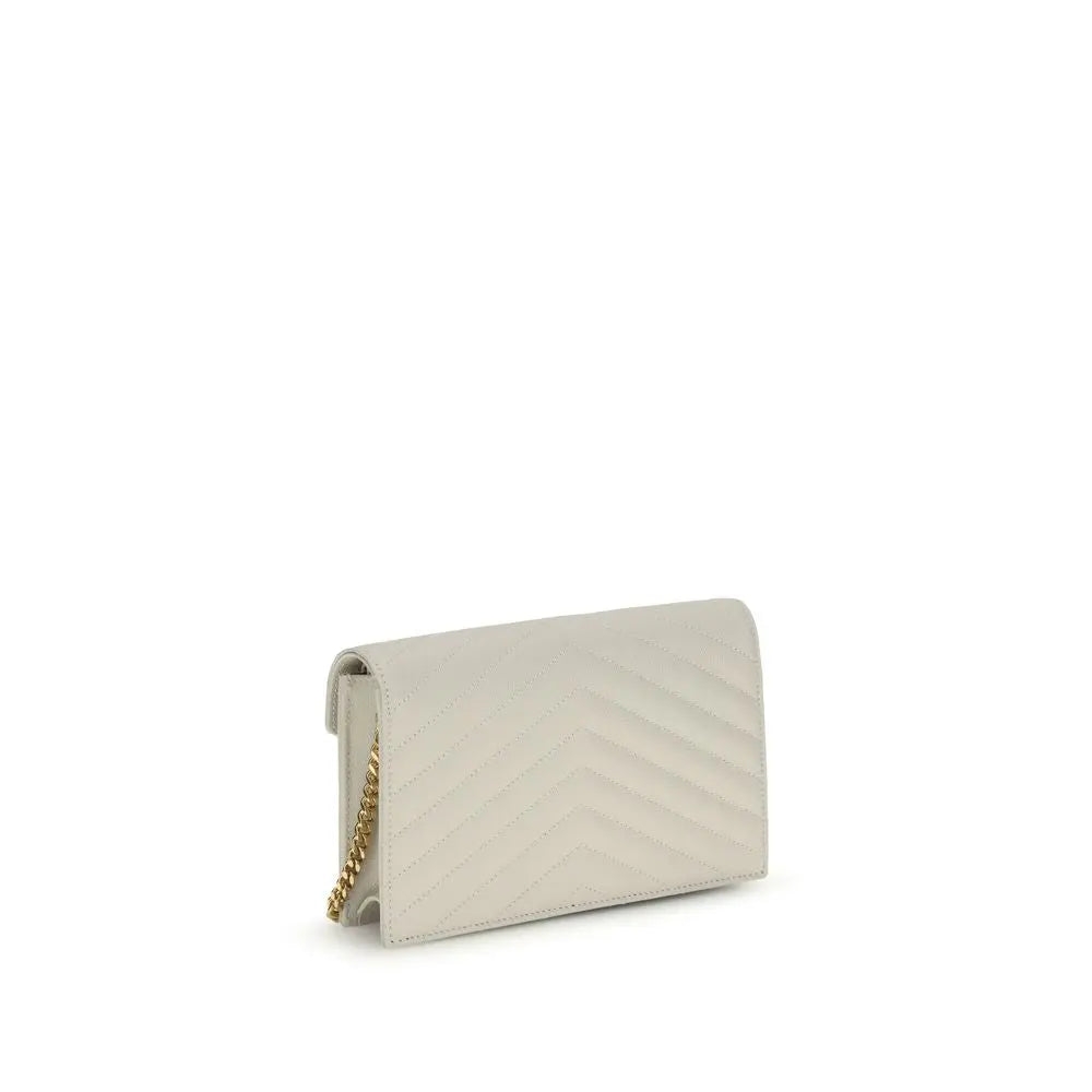 The Cassandre mini Shoulder Bag by Saint Laurent is a compact and sophisticated accessory featuring the “CASSANDRE” decoration and iconic chevron-pattern quilted stitching. Made of leather tanned without chrome or metals, it is enhanced with gold-tone brass details and a grosgrain lining. The snap-button closure and zippered pocket provide functionality, while the leather-reinforced chain strap allows it to be worn comfortably over the shoulder or cross-body. The interior features a card slot and a zippered pocket for optimal organization. A perfect balance of elegance, practicality and sustainability.