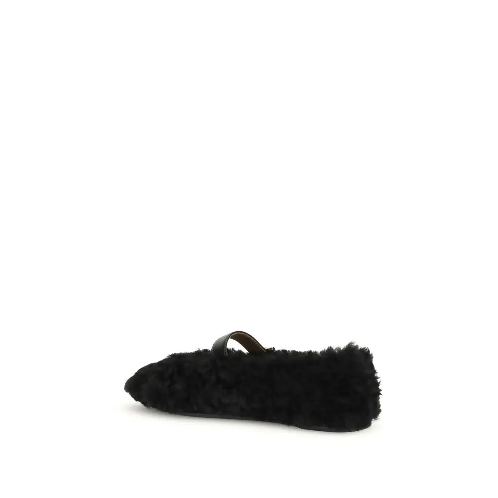 Ferragamo’s Gancini-embellished Ballerinas by Ferragamo reinterprets a classic with a playful, contemporary twist. Featuring a contoured neckline and soft silhouette, it is distinguished by a curly shearling lining, ideal for the cold season. The rubber sole maintains the usual flexibility, while the Gancini buckle on the strap adds an iconic and refined detail.