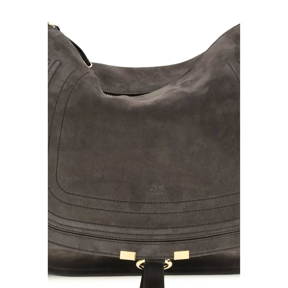 The Marcie suede leather Shoulder Bag by Chloé elegantly reinterprets the Maison’s iconic day bag with a casual silhouette and thoughtful details. Crafted from calfskin suede, it features saddle stitching, a single hand-wrapped handle, gold-tone metal hardware and leather tassels securing the flap. The interior includes a roomy main compartment, an interior flat pocket, and a front pocket hidden by the flap, while a zipper closure ensures convenience and security.