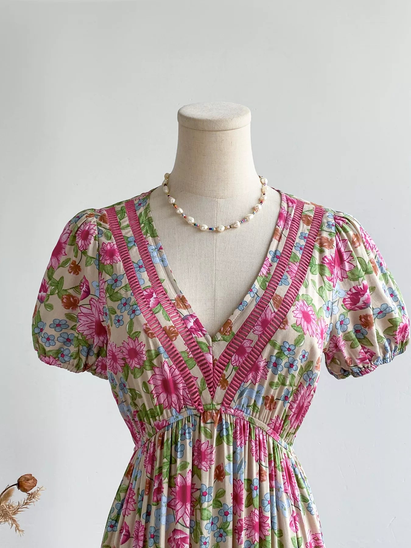 Floral Print V-Neck Puff Sleeve Dress