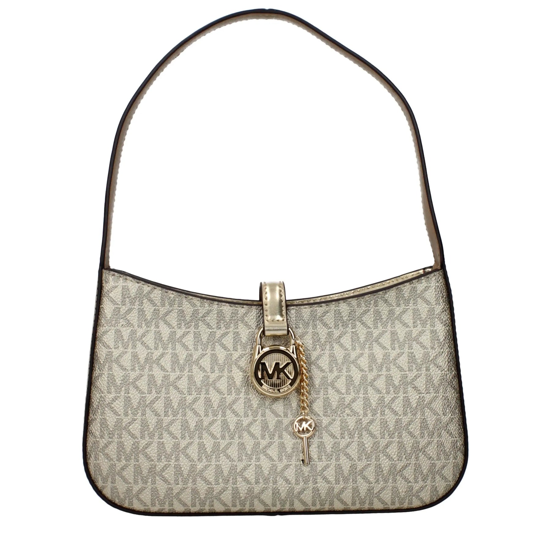 The product with MPN 35F5G1YC1MPALEGOLD and code F85782 fabric in gold is a handbags designed by Michael Kors. It has features like logo, metallic effect.