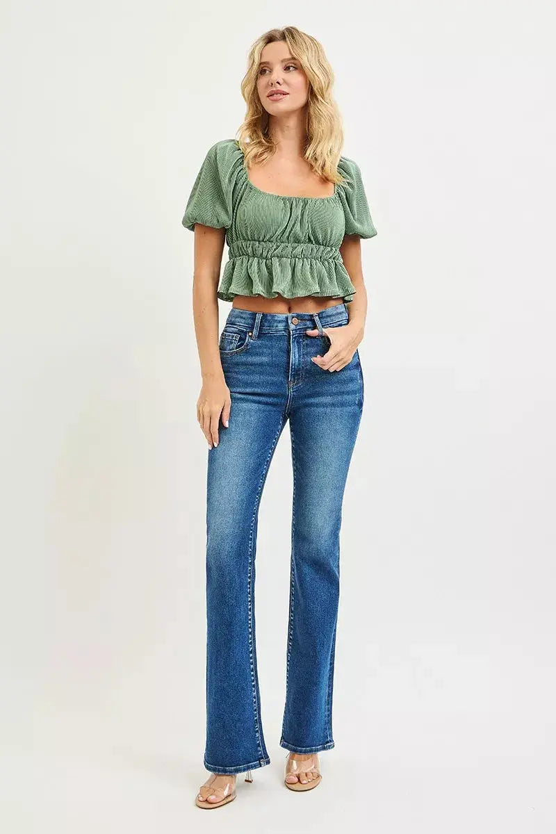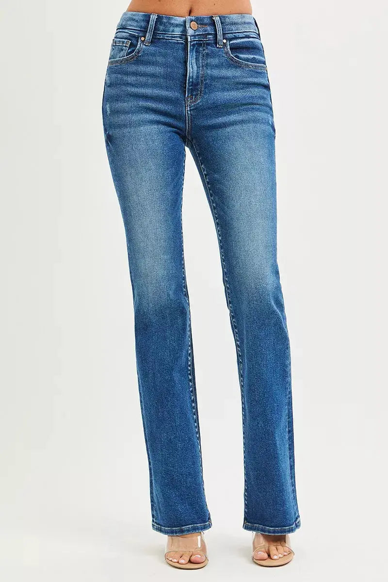 RISEN High Rise Bootcut Jeans With Distressed Details