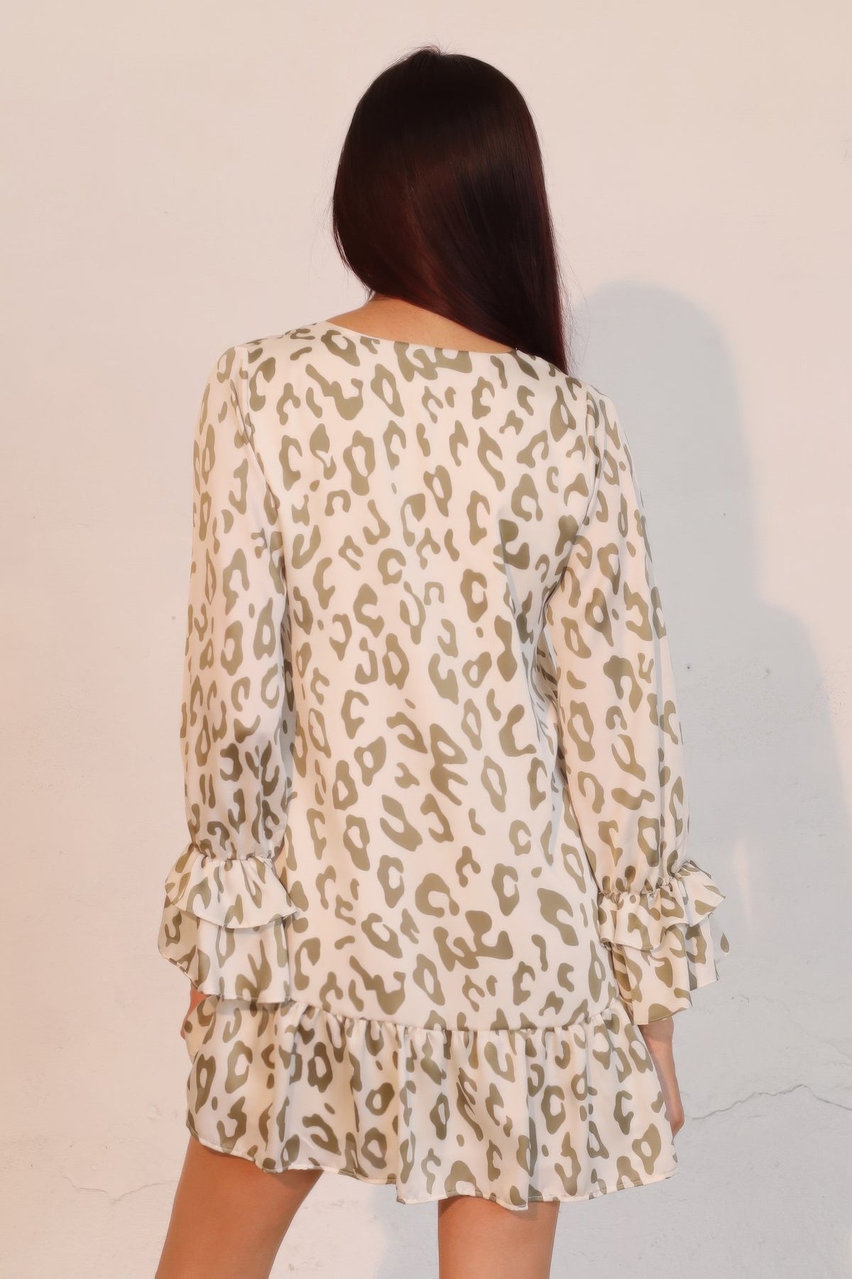 Product Description: Bold yet feminine, the Simple Leopard Dress with Ruffle Cuff adds a stylish edge to your everyday wardrobe. Designed with a classic leopard print, this fully lined dress features delicate ruffle accents at the cuffs and hemline for a soft, playful finish. The long sleeves and relaxed fit make it perfect for cooler days, while the versatile silhouette offers endless styling options. Whether worn on its own or belted for added shape, this dress pairs effortlessly with boots and accessories. Made in the U.S.A., it’s a go-to piece with lasting charm.